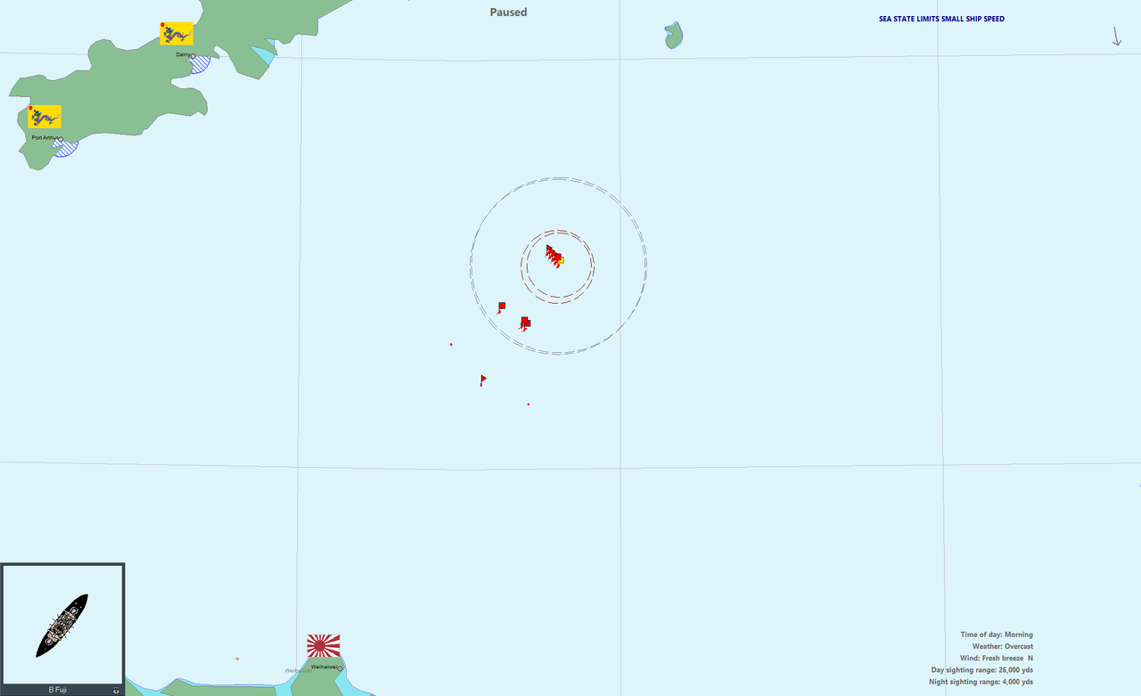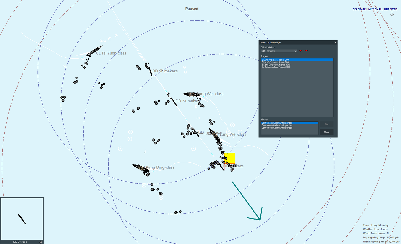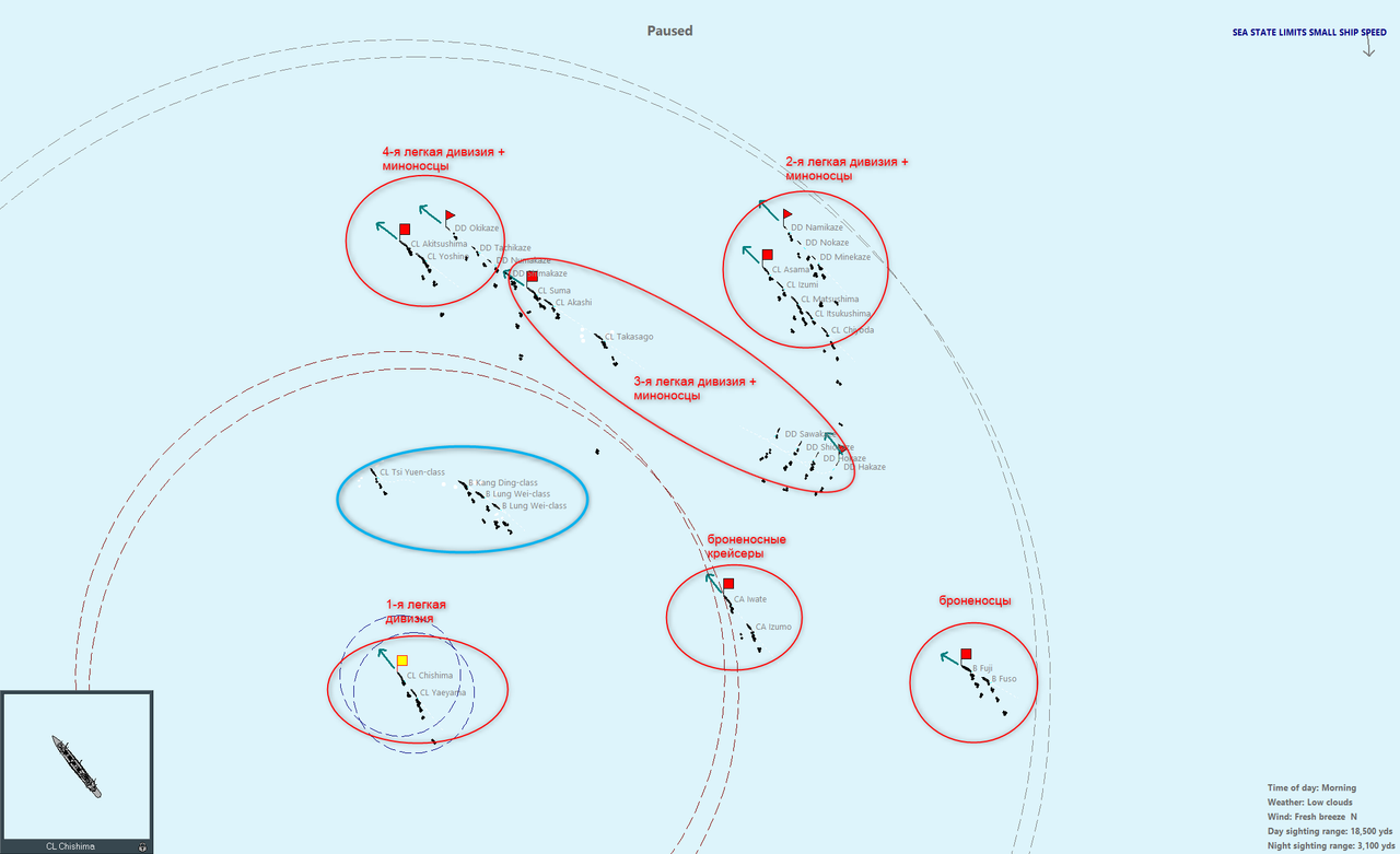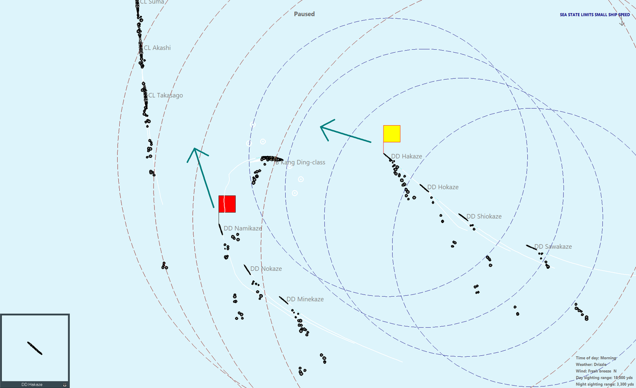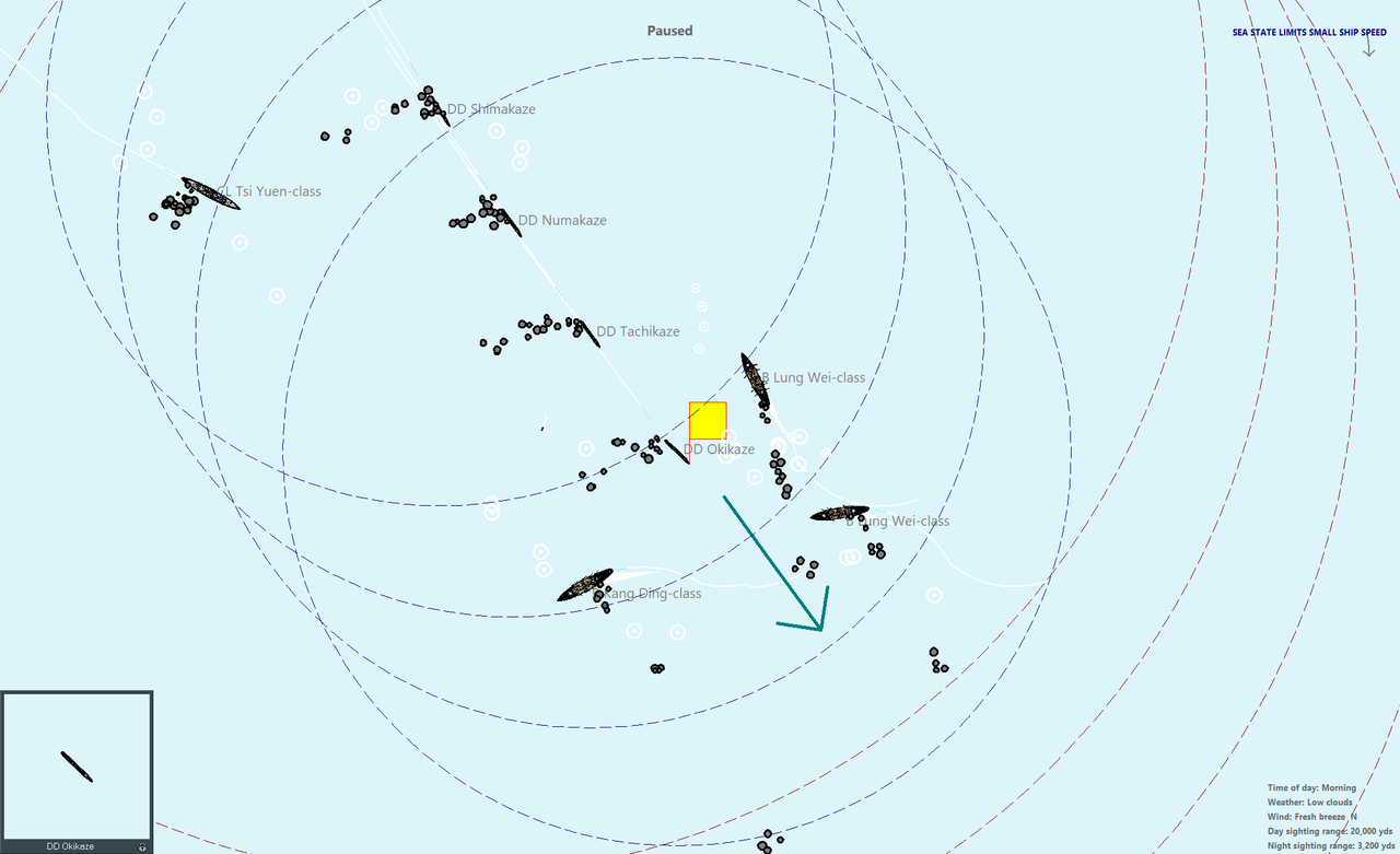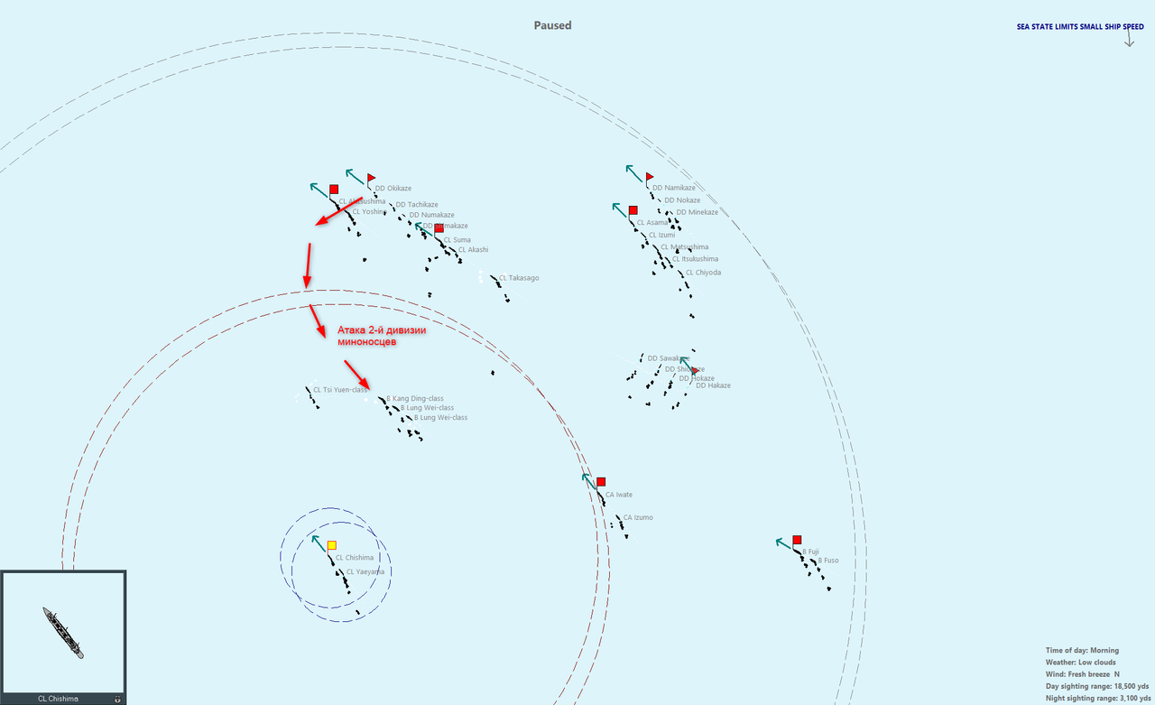 Единственное, что вызывает сомнения - это довольно свежая погода. Я не уверен, что малые миноносцы смогут выполнить минную атаку эффективно, если вообще смогут. Ну, будем пробовать.