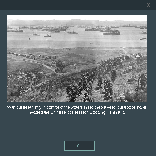 Противник продолжает отказываться ото всех боев, в том числе в поддержку наземных войск, и уже в июне наши войска без каких-либо проблем овладевают Ляодуном. Ура!
