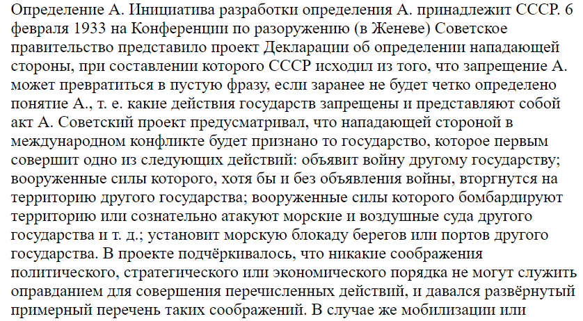 PS Бонус для любителей расставлять кавычки - определение "Агрессии" в БСЭ