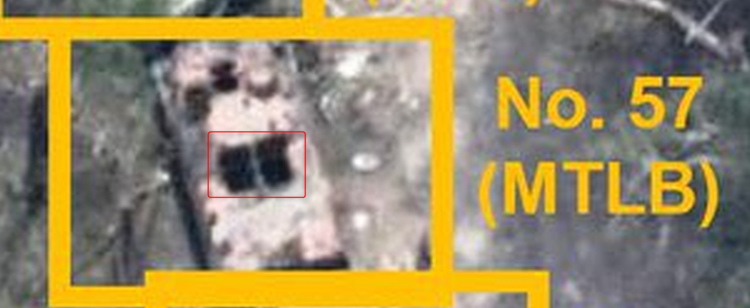 Причем на №57 предательски спалилась квадратная башня от хохлоБТР4. на снимке он обозначен, как мтлб, но квадратную тень от башни БТР 4 от тени от маленькой и круглой башенки МТЛБ только слепой не отличит.