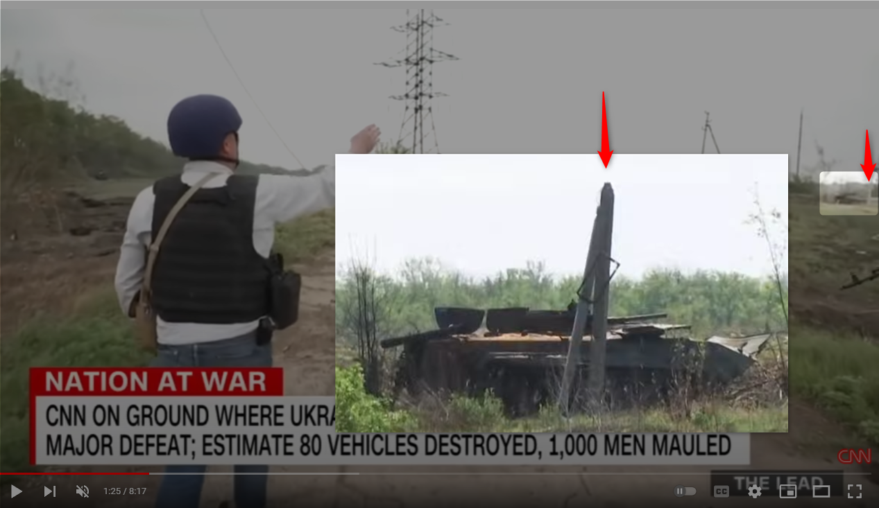 Но №75(#54) стояла дальше. Т.е. не факт что это она. С учетом того что на видео 19.05 от Ukrainian Witness БМП на этом месте нет, а видео Гонор ИМХО сделано позже, то эту БМП перетащили откуда-то с места ближе к пляжу.