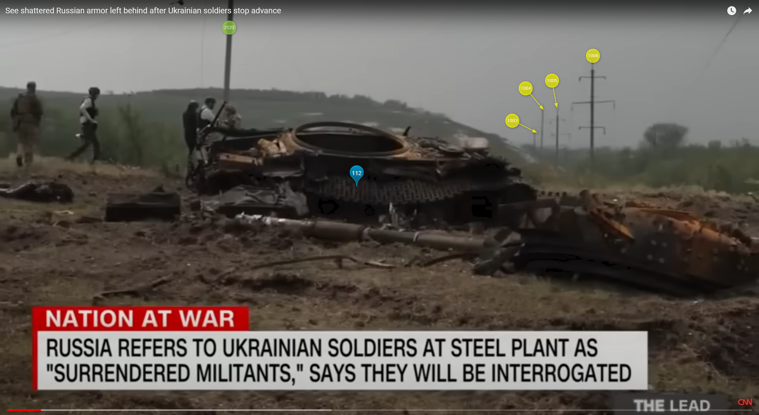 Первый кадр был пробный, это привязка хорошо известного нам танка ВСУ №112.