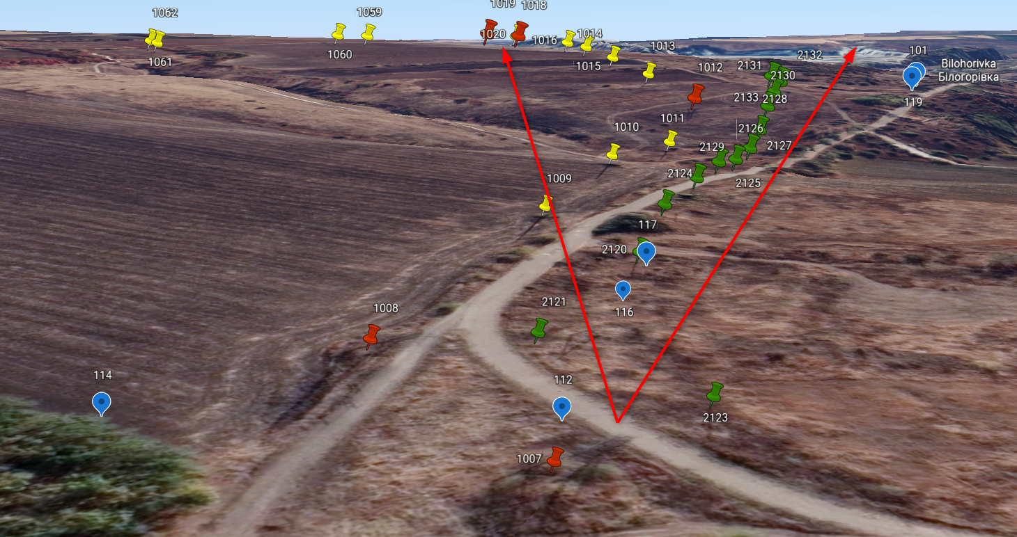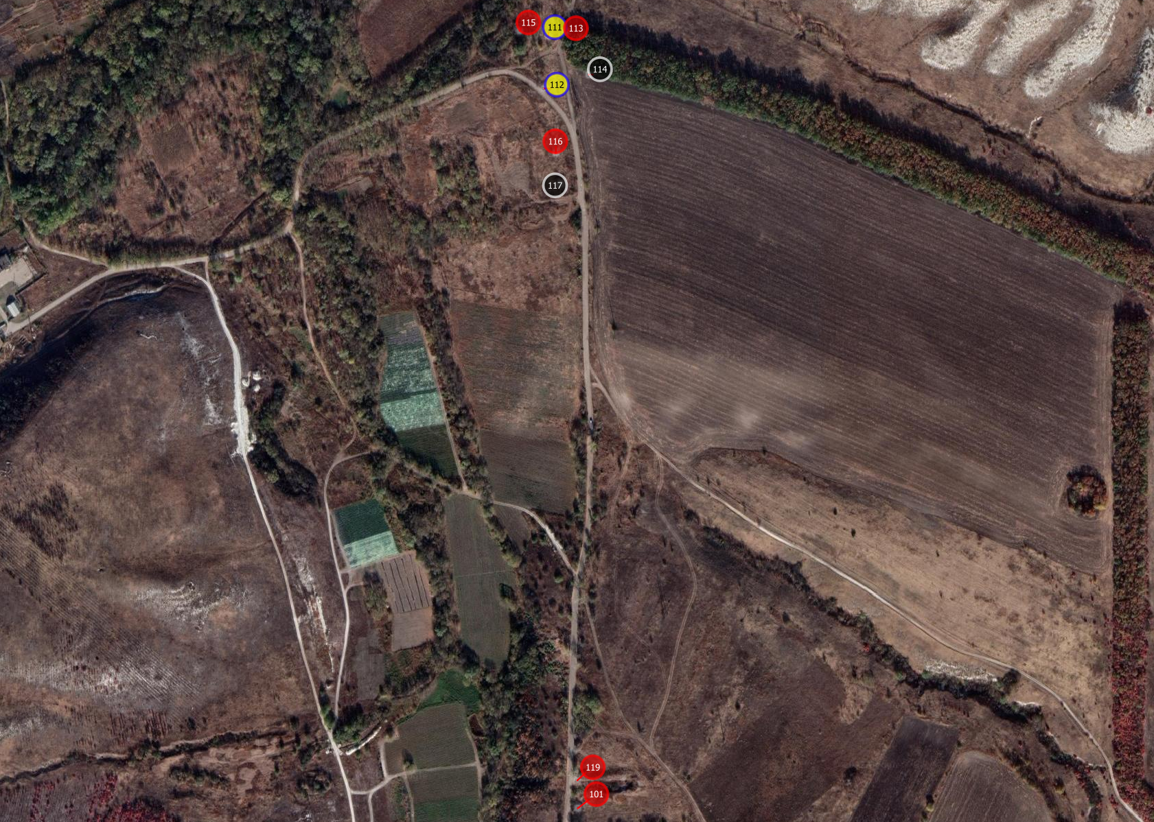 Попытался допривязать БМП и неизвестный объект (с высокой вероятностью танк), находящиеся южнее развилки с двумя нашими подбитыми танками. По нашей классификации это №116 и №117.